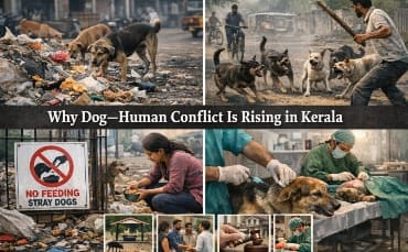 केरल में कुत्तों और इंसानों के बीच बढ़ता टकराव अचानक नहीं हुआ है। यह तेज़ी से किए गए कचरा प्रबंधन सुधारों का नतीजा है, जहाँ सफ़ाई तो बढ़ी लेकिन जानवरों के लिए कोई समानांतर व्यवस्था नहीं बनाई गई। सड़क पर रहने वाले कुत्तों को खाने की कमी होने लगी, वे तनाव में रहने लगे, और इसी वजह से गलियों और सड़कों पर इंसानों के साथ टकराव बढ़ता गया।