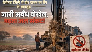 छत्तीसगढ़ के बेमेतरा जिले में प्रशासन द्वारा बोरवेल खनन पर बैन के बावजूद अवैध बोर खनन जारी है। गिरते भूजल स्तर के बीच यह स्थिति आने वाले बड़े जल संकट की चेतावनी दे रही है।