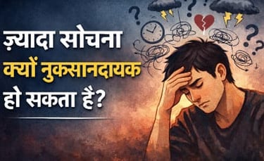 ज़्यादा सोचना अक्सर एक छोटी-सी बात से शुरू होता है। कोई पुरानी गलती, किसी का व्यवहार, या भविष्य की कोई अनिश्चित स्थिति। दिमाग उस एक बात को पकड़ लेता है और उसे बार-बार दोहराने लगता है। हम सोचते हैं कि हम समाधान ढूंढ रहे हैं, लेकिन असल में हम उसी जगह फँस जाते हैं। विचार आगे नहीं बढ़ते, बस घूमते रहते हैं। जैसे एक गाना अटक गया हो और बार-बार वही लाइन बज रही हो।